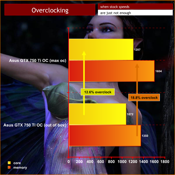 Sometimes overclocking a card past the ‘out of box' speeds doesn't give much reward, but we can't say the same when overclocking the GTX 750Ti. The increase in performance is noticeable and well worth the time.
