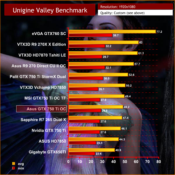 Another healthy score, around a frame per second faster than the Sapphire R7 265 Dual X.
