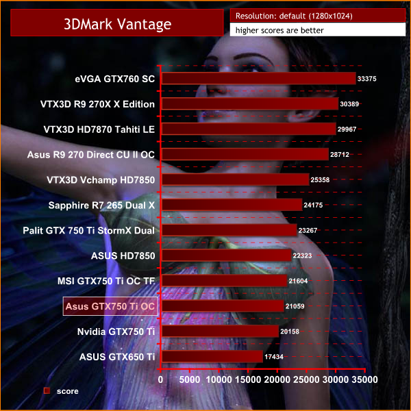 As expected., the modest overclock means the ASUS GTX750 Ti OC scores a little higher than the Nvidia reference solution we use a base position.