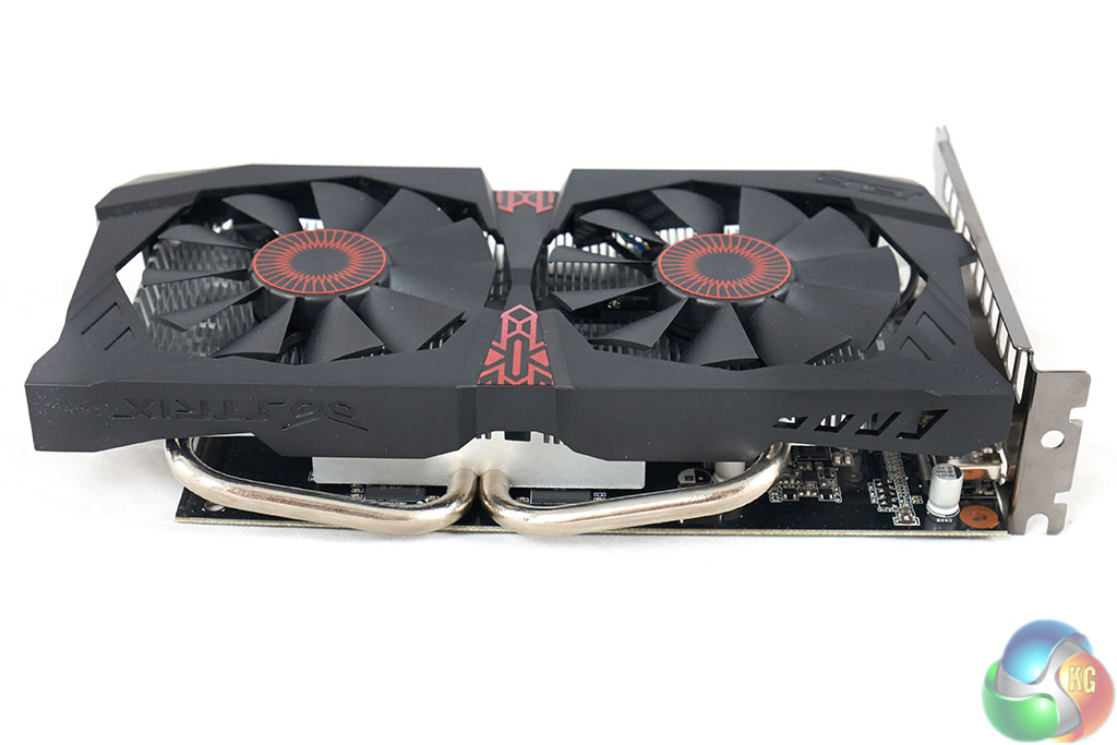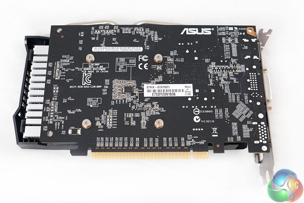 Two big heatpipes are visible along the top of the card. Thankfully, and unlike the previous Asus GTX750Ti OC which we reviewed back in March – the GTX750 Strix OC does not need additional power from a PCI e connector.