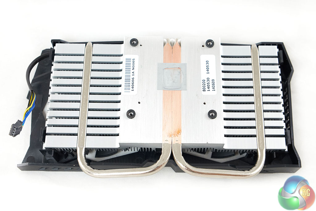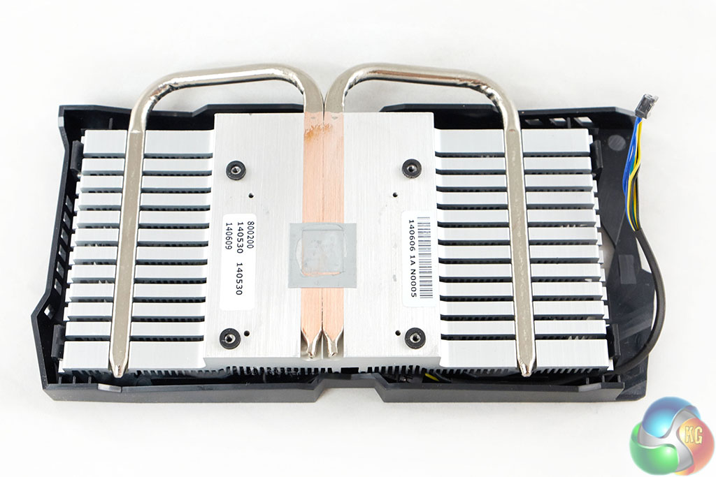 ASUS are using a direct touch heatsink. Interesting to see they have coated the heatpipes for appearance once they become visible outside the confines of the heatsink area. Twelve large fins (more like ‘blocks' really) run the length of the card to help deal with heat. As we know the GTX750 Ti is a cool running architecture, so it will be interesting to see how this design copes under extended load situations.
