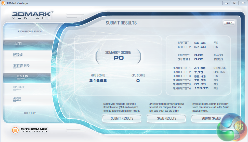 Futuremark released 3DMark Vantage, on April 28, 2008. It is a benchmark based upon DirectX 10, and therefore will only run under Windows Vista (Service Pack 1 is stated as a requirement) and Windows 7. This is the first edition where the feature-restricted, free of charge version could not be used any number of times. 1280×1024 resolution was used with performance settings.