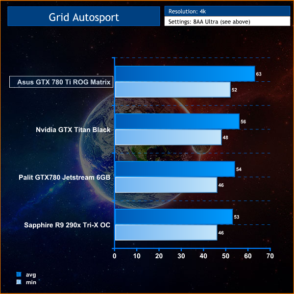 The engine doesn't really cause issues for any of the hardware on text today at 4K resolutions. The ROG Matrix card is clearly out in front, averaging 63 frames per second.