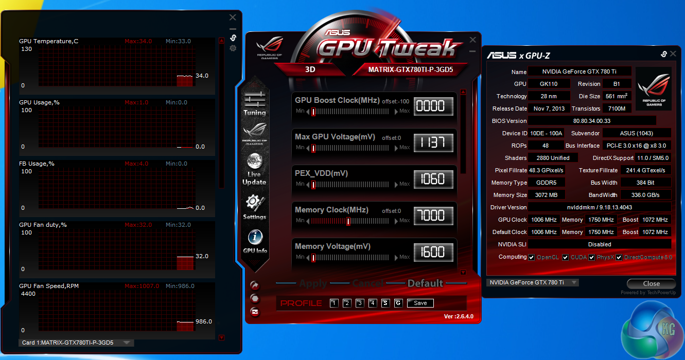 We used the latest version of ASUS GPU Tweak 2.6.4.0. available from their website here.
