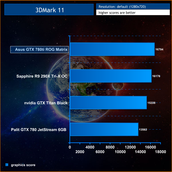 Excellent results from the Asus GTX780 Ti ROG Matrix card, claiming top spot in this last generation Direct X 11 benchmark.