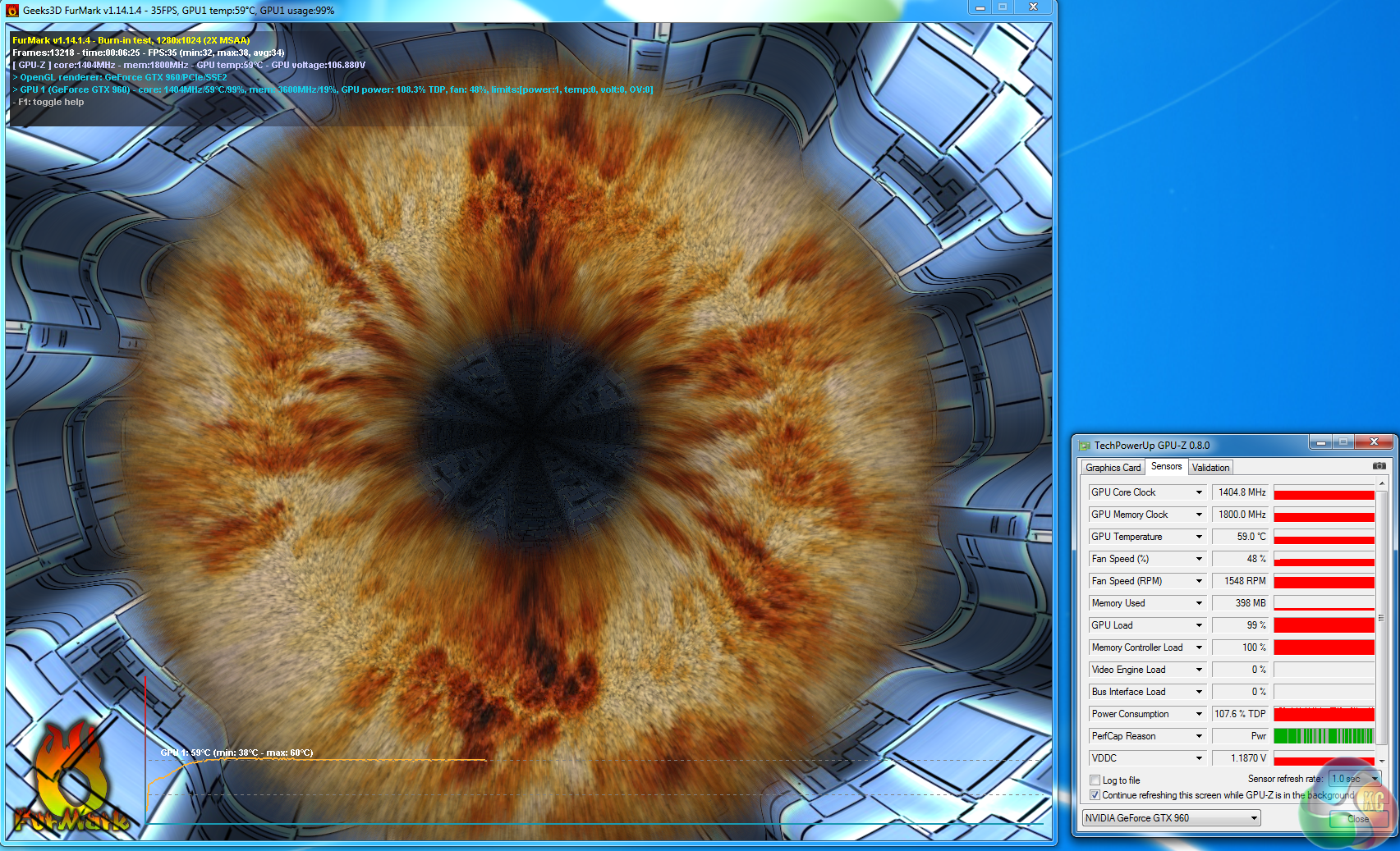 The tests were performed in a controlled air conditioned room with temperatures maintained at a constant 23c – a comfortable environment for the majority of people reading this.Idle temperatures were measured after sitting at the desktop for 30 minutes. Load measurements were acquired by playing Crysis Warhead for 30 minutes and measuring the peak temperature. We also have included Furmark results, recording maximum temperatures throughout a 30 minute stress test. All fan settings were left on automatic.