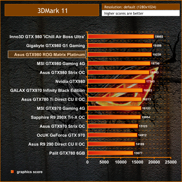 A final GPU rating of 19,238 points is pretty much how we would expect the ASUS card to score. Interesting to see that the Gigabyte GTX980 G1 Gaming scores a little higher, but the final figures are so close, it is negligible.