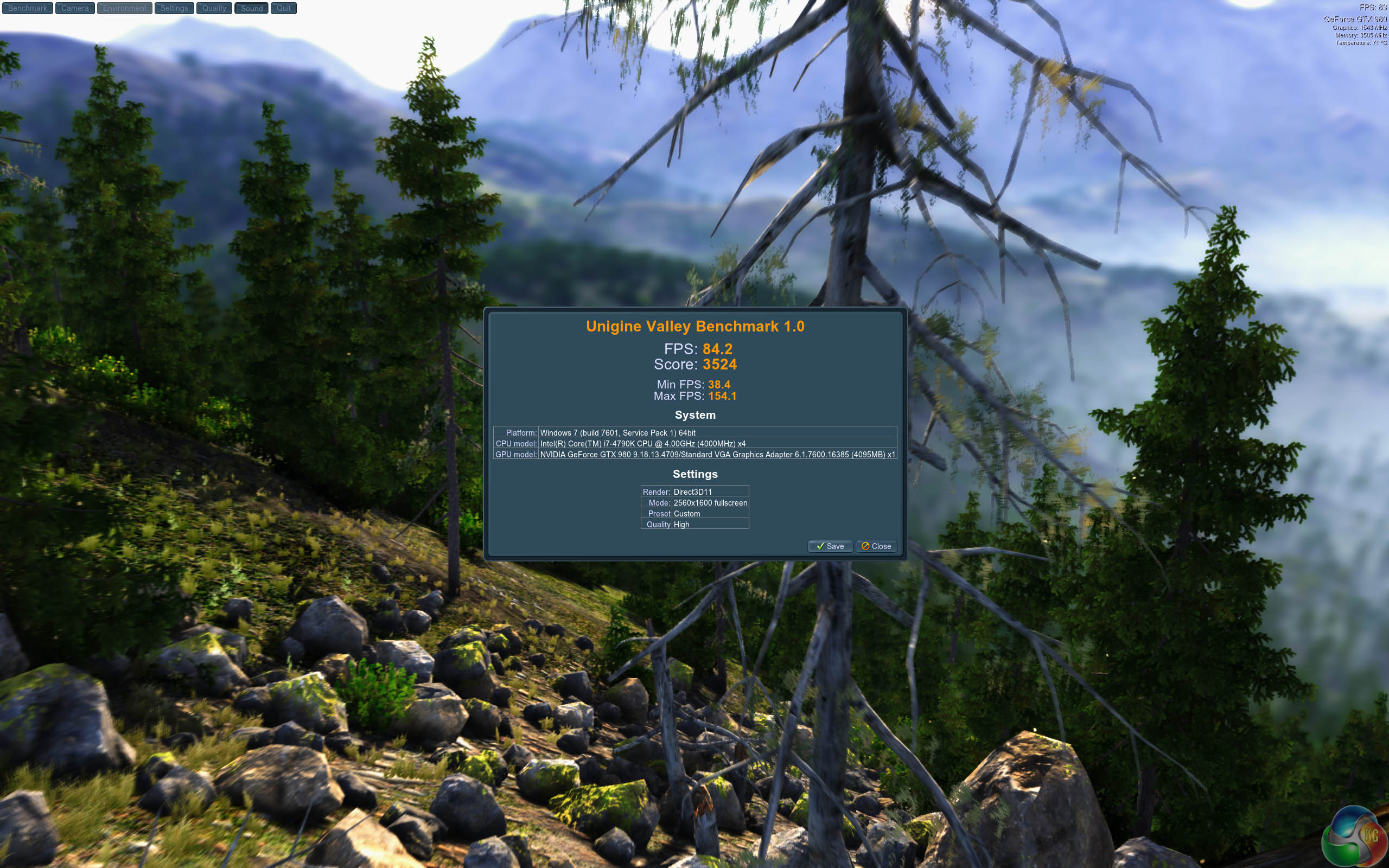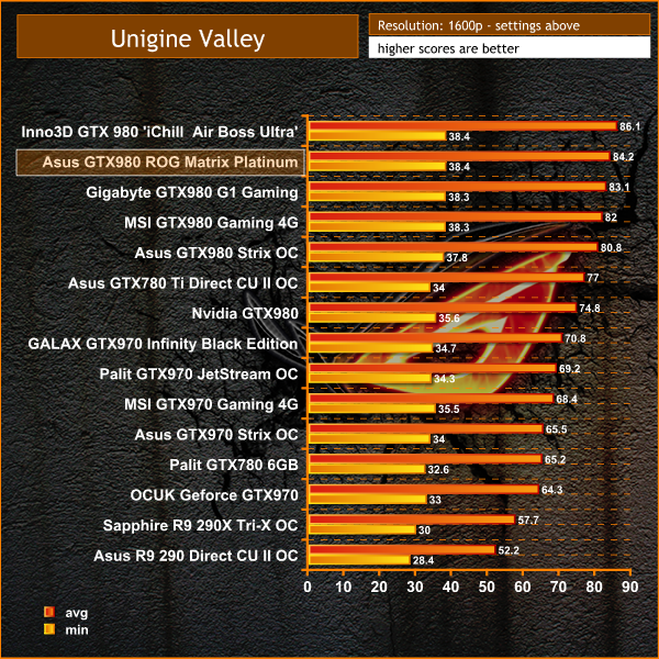 Another class leading result from the Asus GTX980 ROG Matrix Platinum, achieving an average over 84 frames per second.