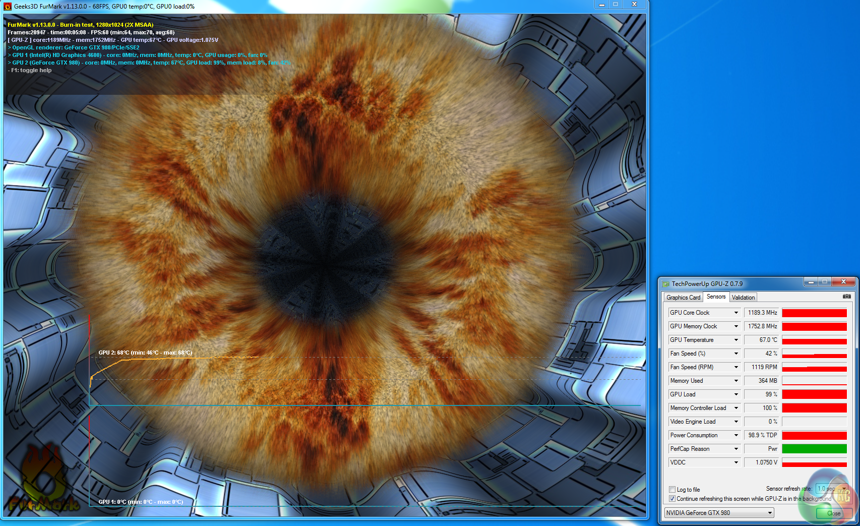 The tests were performed in a controlled air conditioned room with temperatures maintained at a constant 23c – a comfortable environment for the majority of people reading this.Idle temperatures were measured after sitting at the desktop for 30 minutes. Load measurements were acquired by playing Crysis Warhead for 30 minutes and measuring the peak temperature. We also have included Furmark results, recording maximum temperatures throughout a 30 minute stress test. All fan settings were left on automatic.