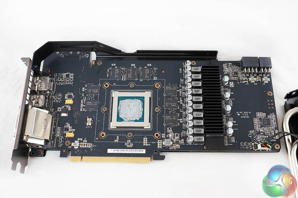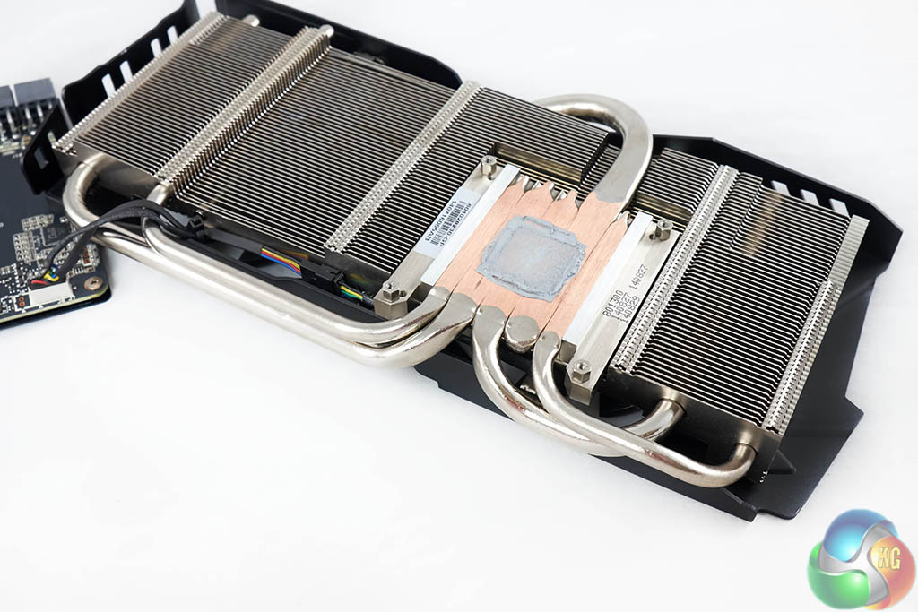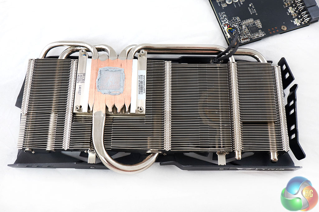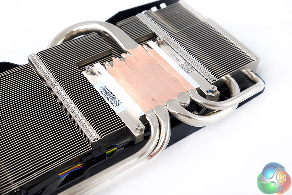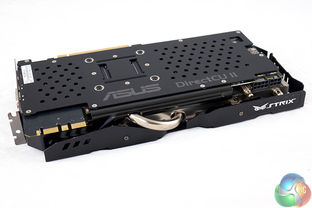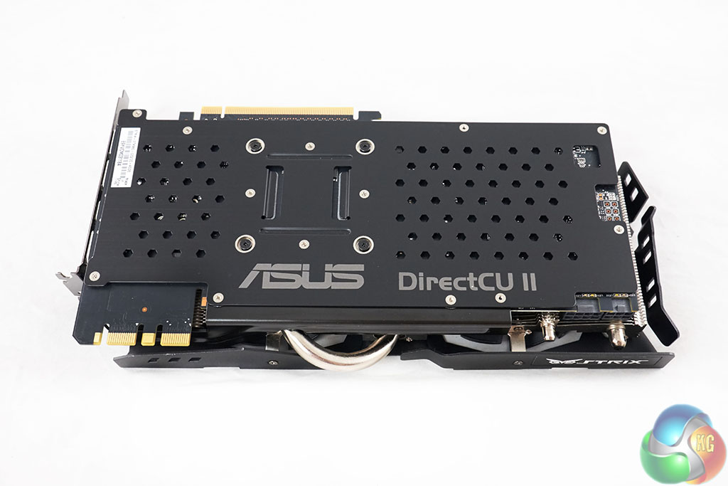 The Asus GTX980 Strix utilises a direct touch cooling system. 5 thick heatpipes run in both directions into several aluminum heatsink racks on either side. These heatpipes are coated for appearance, but left naked at the base. Asus are using high grade Samsung GDDR5 memory.