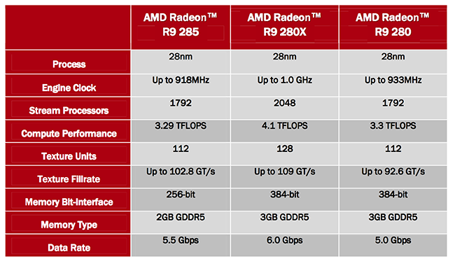 AMD are marketing the R9 285 as a direct competitor to Nvidia's GTX760 and on a hardware level we can see it is similar to the current R9 280.