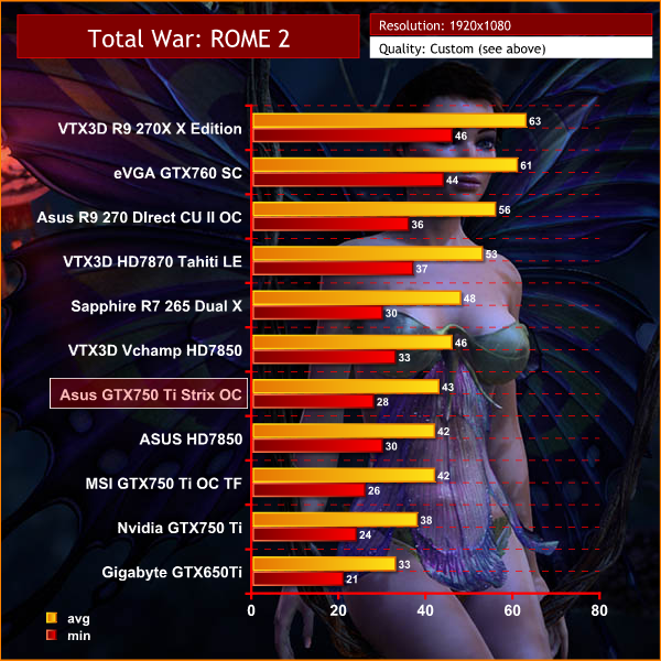 A strong engine for AMD hardware, and we can see the overclocked GTX760 struggles to score close to the same frame rates as the R9 285 or R9 280.