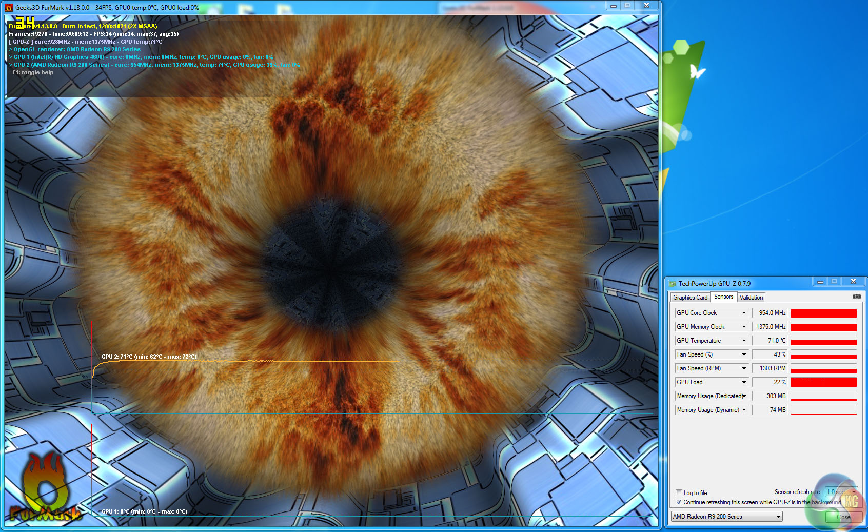 The tests were performed in a controlled air conditioned room with temperatures maintained at a constant 24c – a comfortable environment for the majority of people reading this. Idle temperatures were measured after sitting at the desktop for 30 minutes. Load measurements were acquired by playing Crysis Warhead for 30 minutes and measuring the peak temperature. We also have included Furmark results, recording maximum temperatures throughout a 30 minute stress test. All fan settings were left on automatic.
