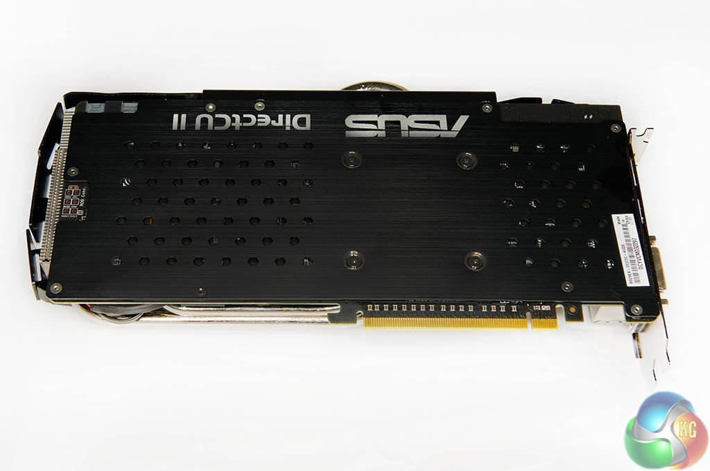 The Asus R9 290X Direct CU II is a heavy card, due to the weight of the metal heatsink and massive heatpipes. The rear of the PCB has a backplate which will help reduce operating temperatures and offer some protection.