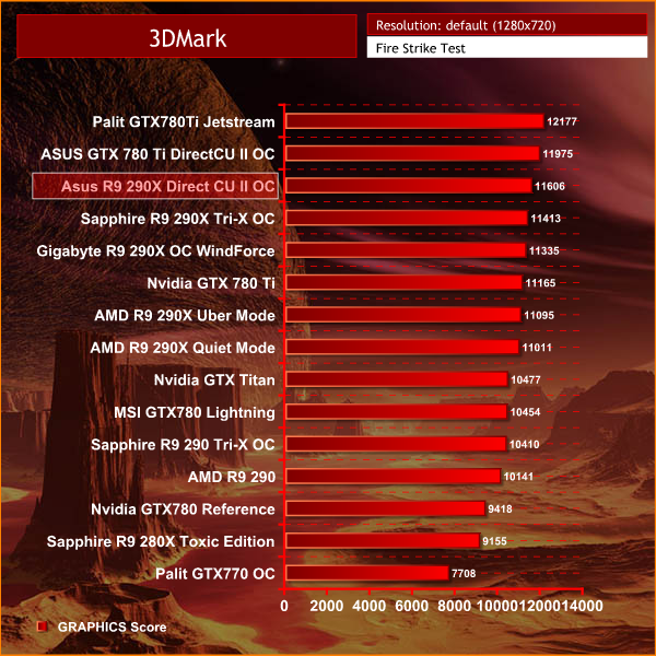 Again, the Asus R9 290X Direct CU II OC claims top AMD spot in the chart, behind the overclocked GTX780 Ti solutions.
