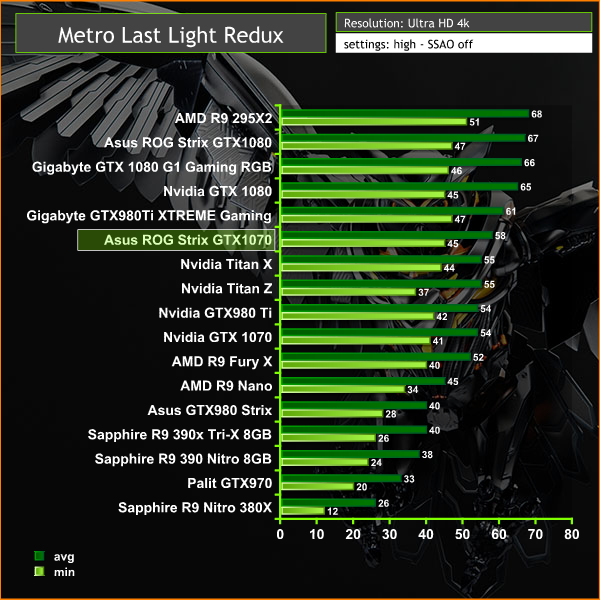 We have to drop image quality settings to get this engine running better at Ultra HD 4K. By doing so, the Asus Republic Of Gamers Strix GTX 1070 hits an average frame rate close to 60.