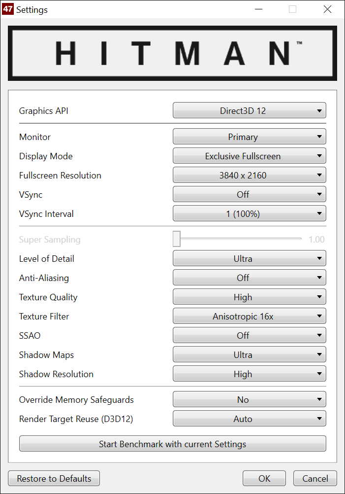 We test with many of the settings maximised, SSAO is disabled however as I found it causes some crashing. I have to say that Hitman is a little unstable at times under the best of situations, but we managed to get it running well enough to benchmark. The built in benchmark is very flaky indeed however, so real world runs had to be used.