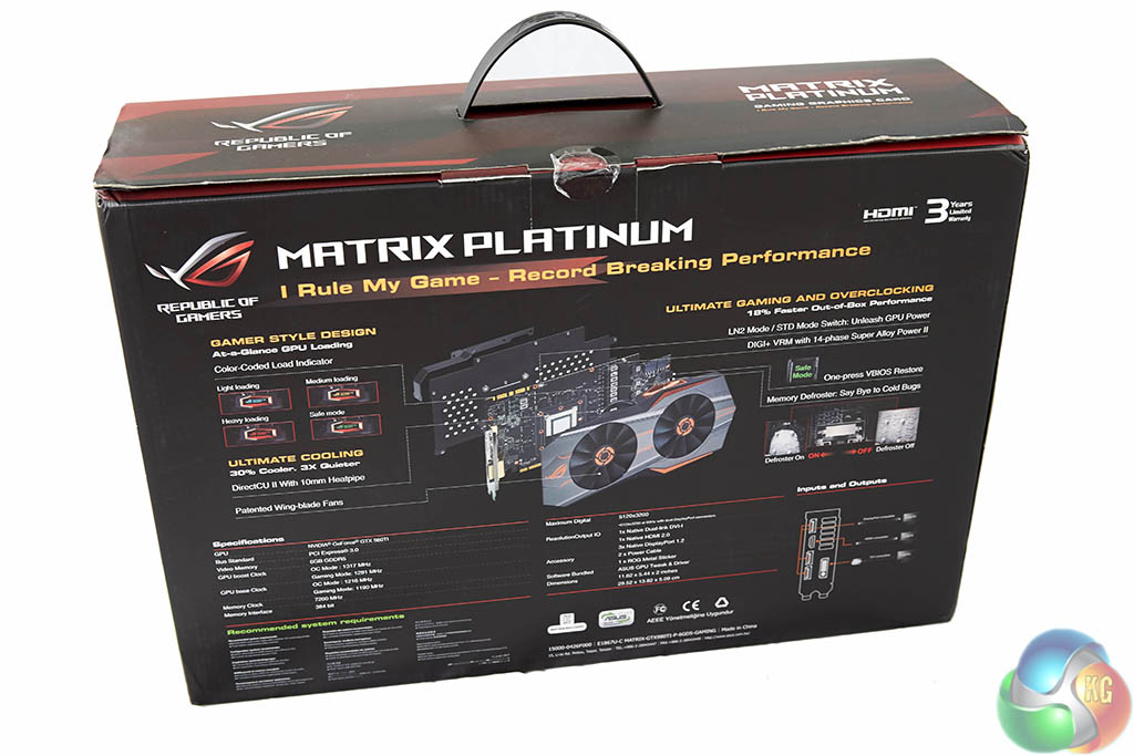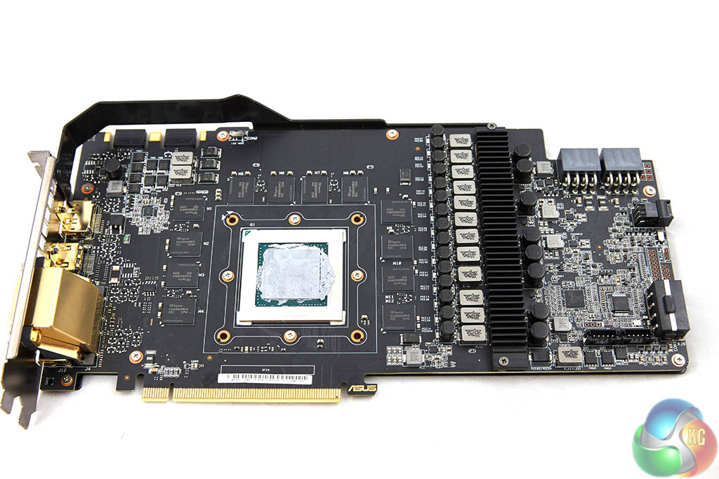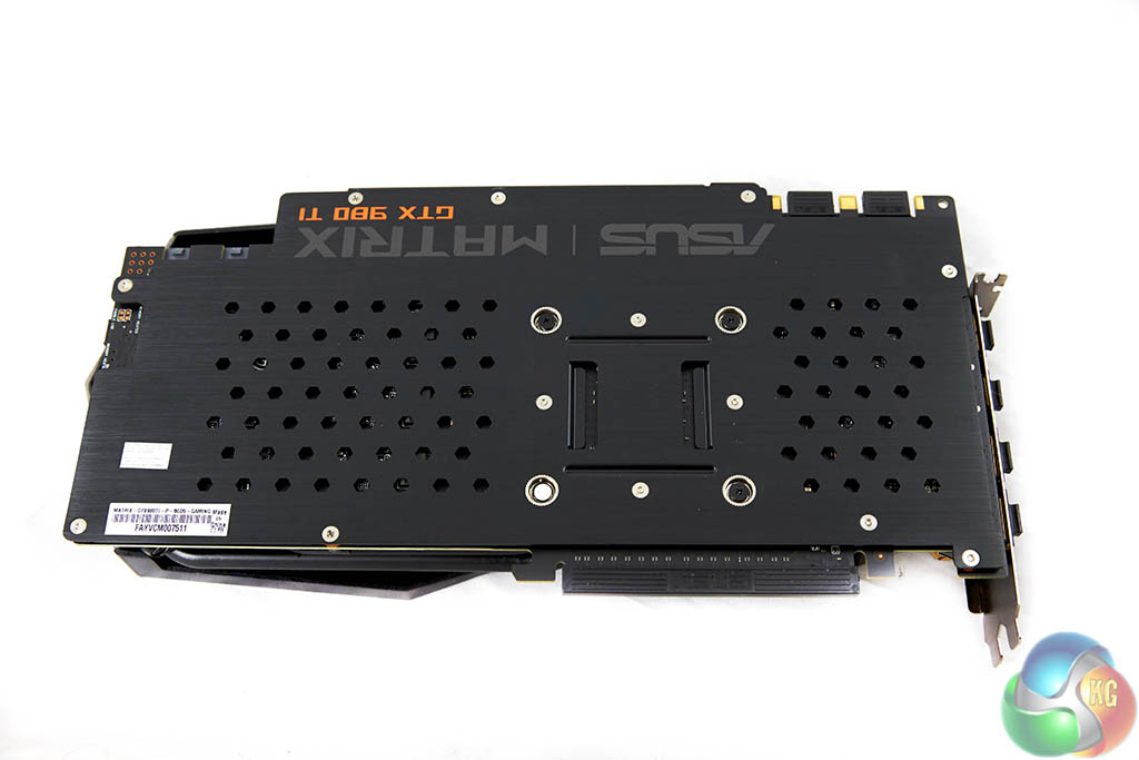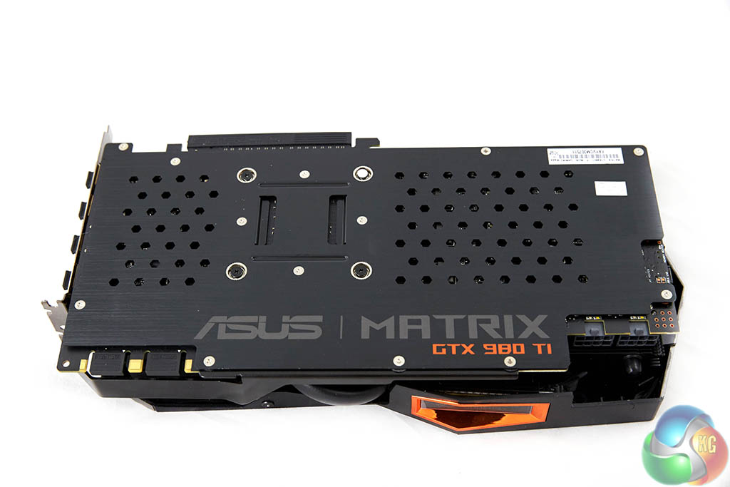 The Asus ROG Matrix GTX 980Ti Platinum Edition is equipped with a branded backplate. We do like to see a quality backplate fitted to a graphics card – it not only helps protect the sensitive PCB components but will drop temperatures specifically on hot spots close to the VRM's and GPU core.