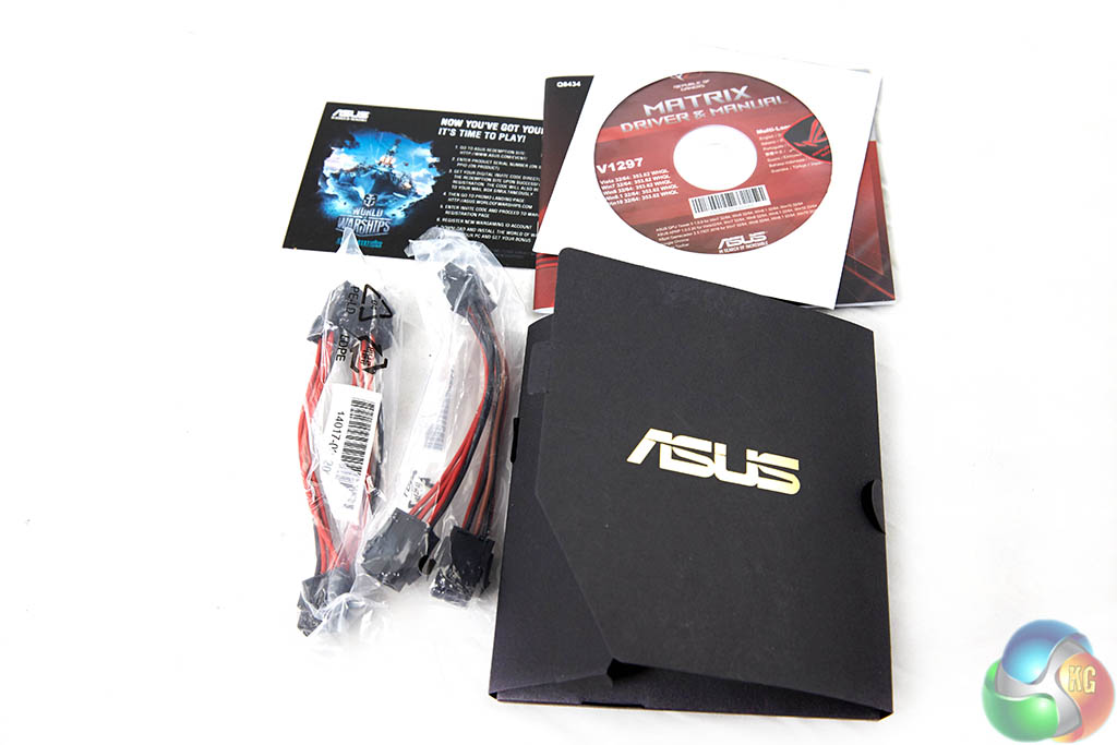 For a flagship card, the bundle is a little light. ASUS include a software disc, literature on the card alongside two power converter cables.