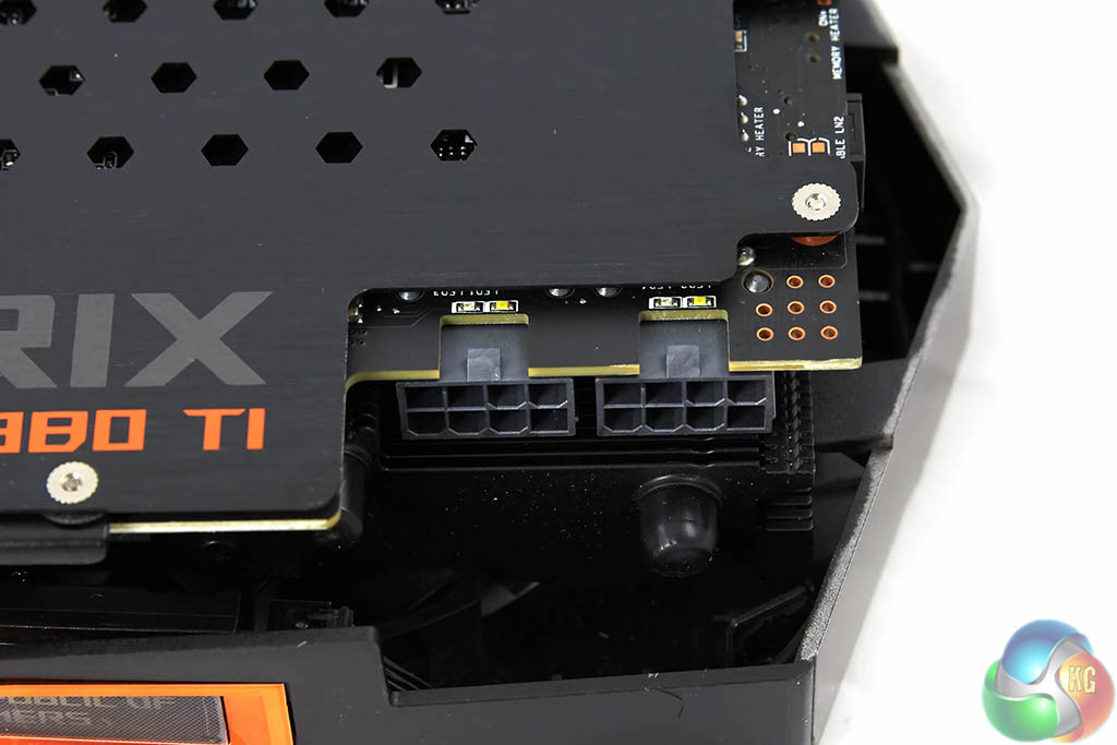 The Asus ROG Matrix GTX 980Ti Platinum Edition takes power from two eight pin connectors, as shown above.