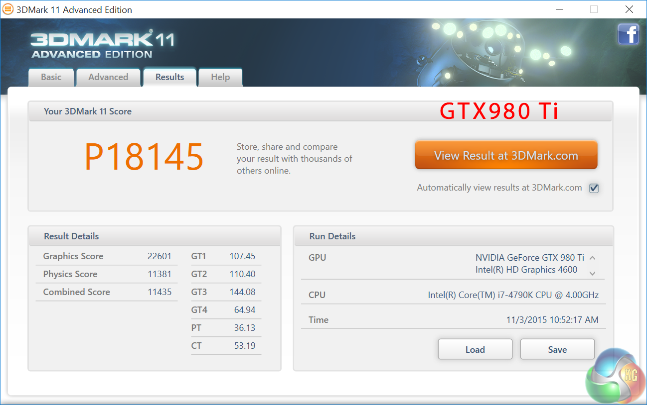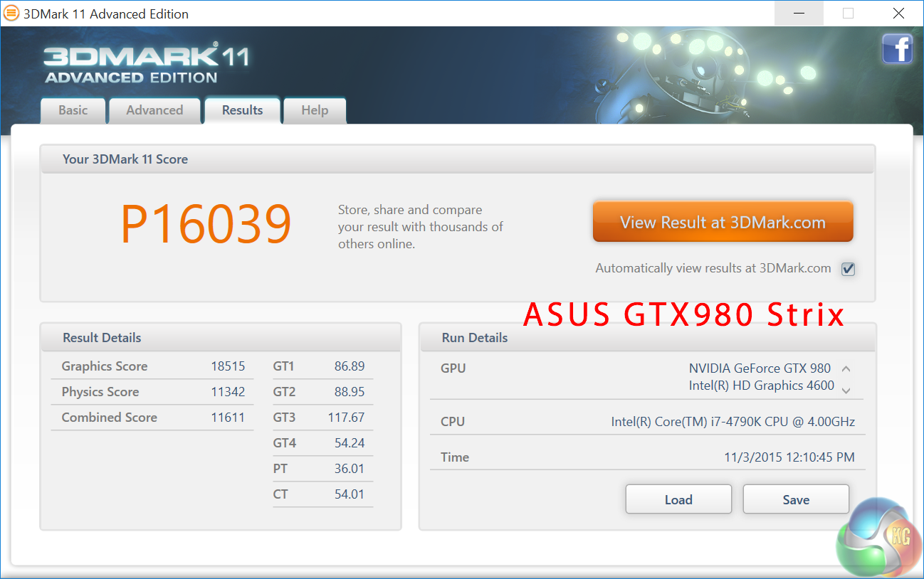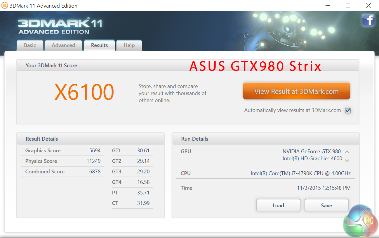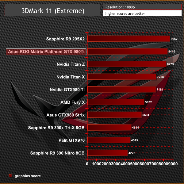 The Asus ROG Matrix GTX 980Ti Platinum Edition rates well at the default resolution, scoring 26,549 points, and slotting in between the Titan Z and the R9 295X2.