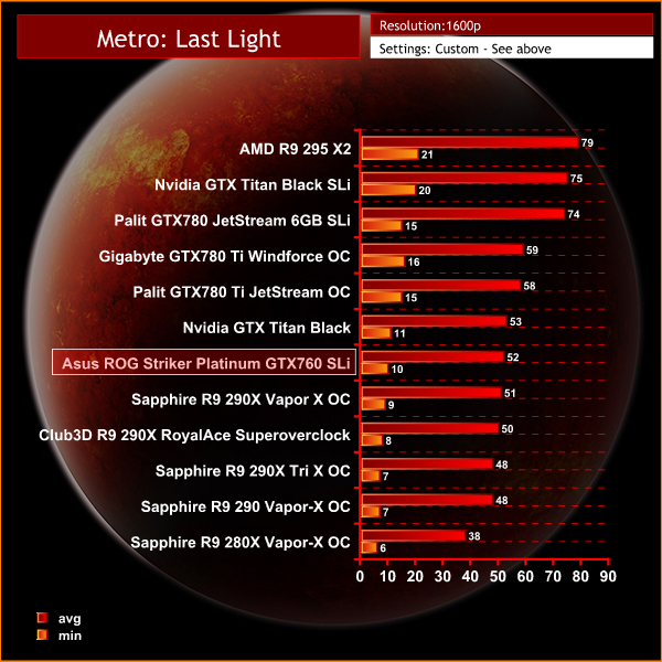 Excellent results, just ahead of the Sapphire R9 290X Vapor X OC at an average of 52 frames per second.