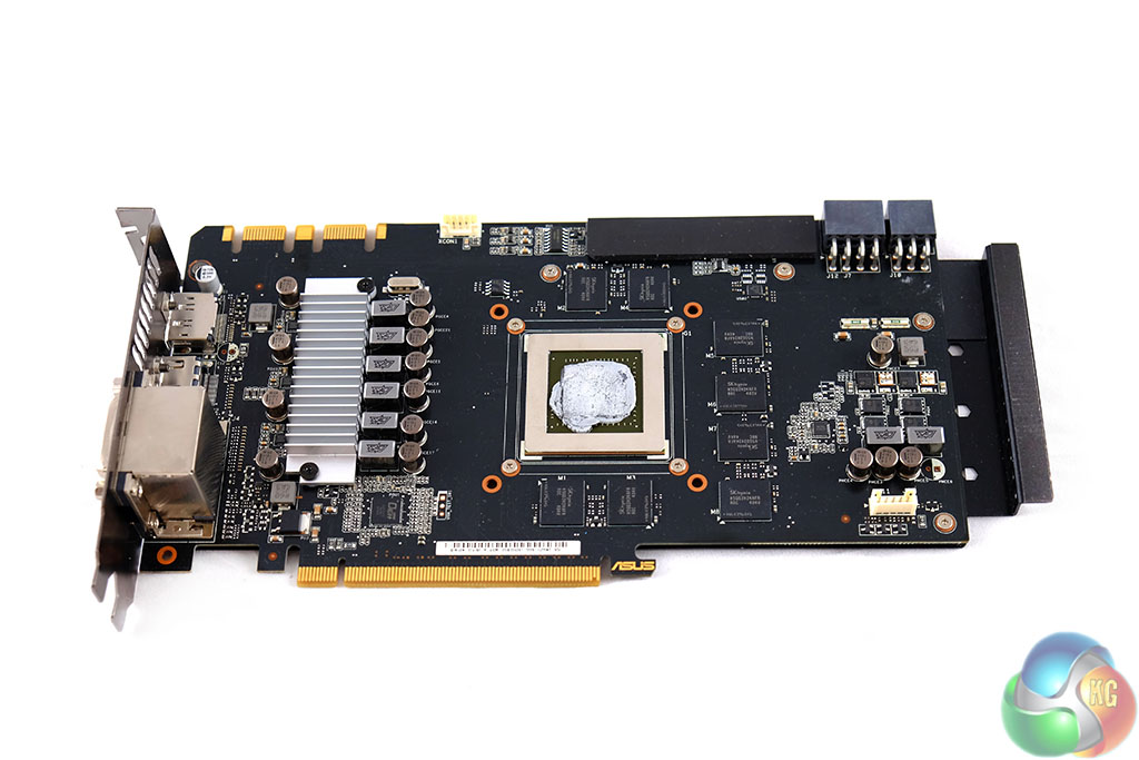 Asus are using SKHynix GDDR5 memory and they have adopted Japanese made Nichicon GT series black metallic capacitors to aid with longevity (10,000 hours, up from standard 2,000 hour ratings) and stability. The PCB is using an 8 Phase power implementation with digital voltage regulation. Other goodies include concrete core chokes and hardened MOSFET's. Asus claim this card will not suffer from annoying ‘whines' and ‘buzzes'.