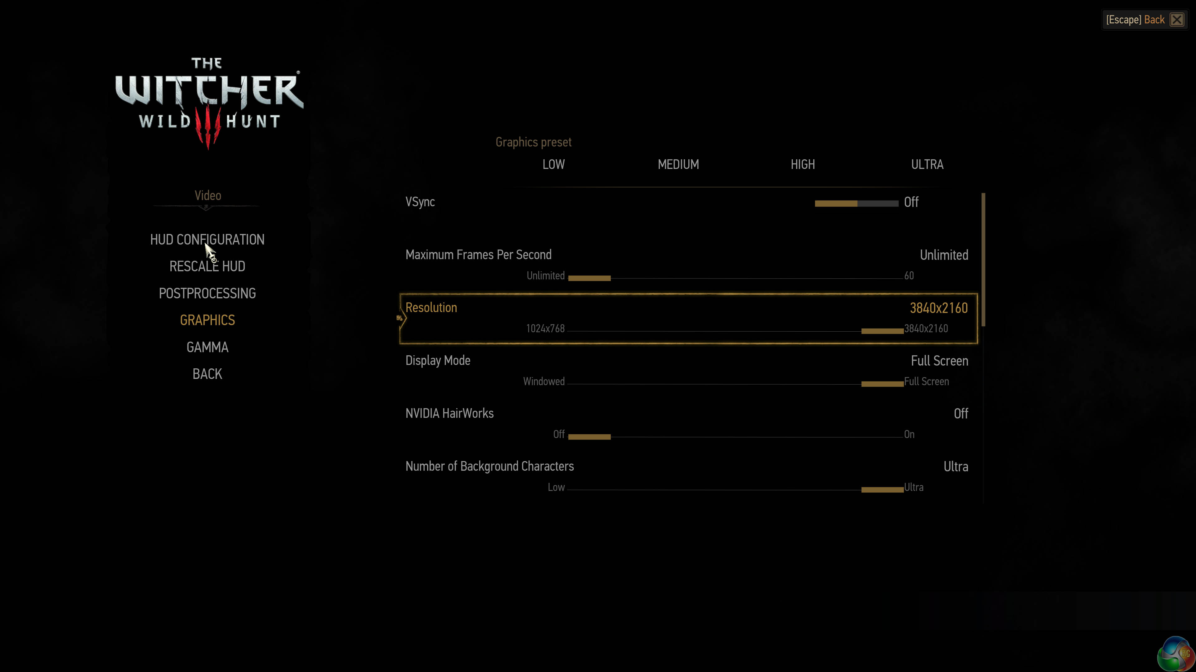 We test with the highest image quality settings, although I have disabled the Nvidia Hairworks option specifically as it does kill frame rate on many cards. Graphics Preset is on ULTRA and Postprocessing is on HIGH.