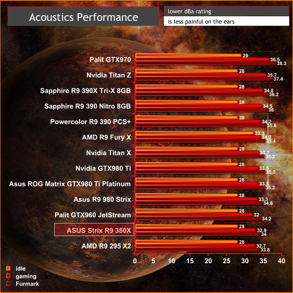 The ASUS Strix R9 380X DirectCU II OC exhibited no coil whine at all, even under stressful and extremely synthetic test parameters.