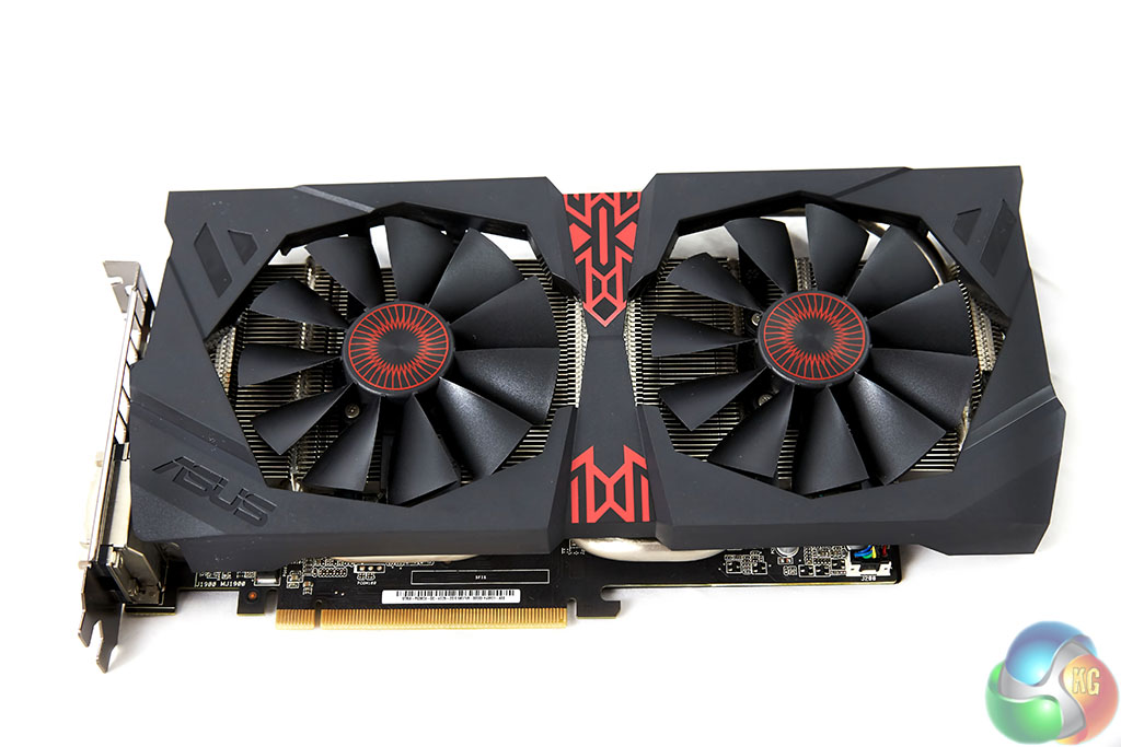 The ASUS Strix R9 380X DirectCU II OC is well built, comprising two large fans inside a cooler shroud. Some Strix artwork adorns the cooler in various places. ASUS have fitted the card with a backplate to protect the sensitive components and to help reduce hot spots on the PCB.