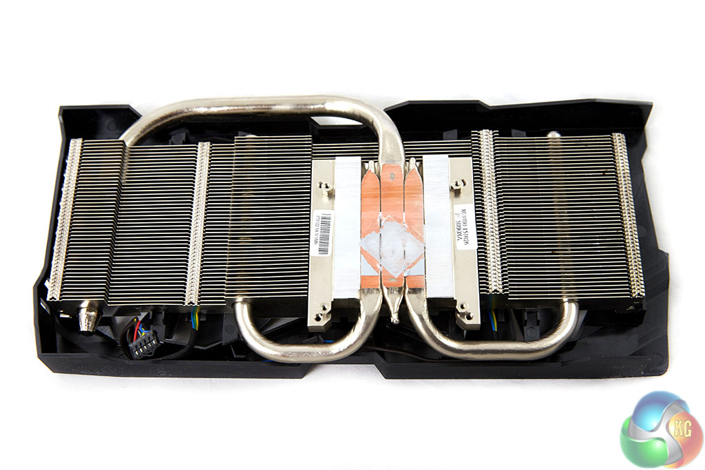 The Direct CU II cooler is comprised of three thick heatpipes which run into a copper base on one side and two separate racks of aluminum fins on the other.
