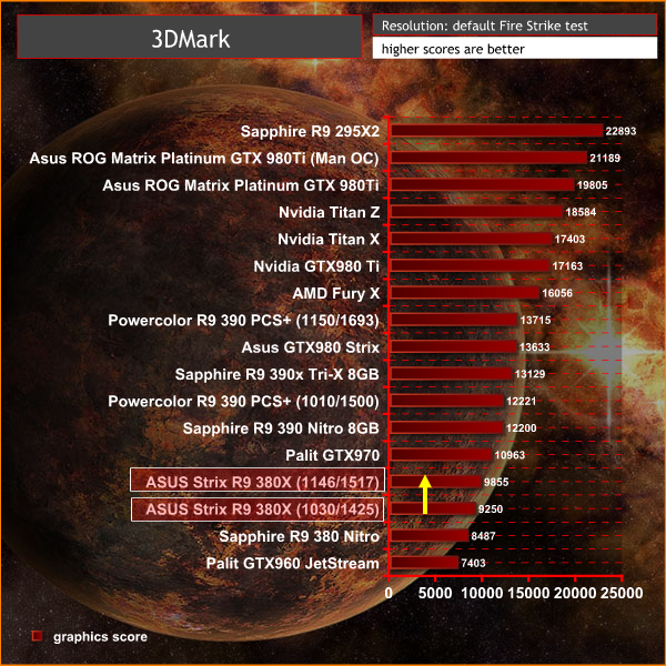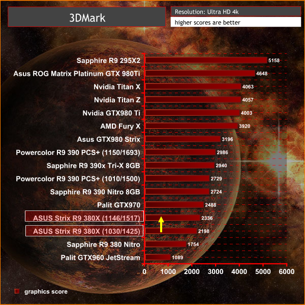 The Asus Strix R9 380X outperforms the Sapphire R9 380 Nitro and GTX960 JetStream, but even when overclocked to the limit it can't quite catch the GTX970.