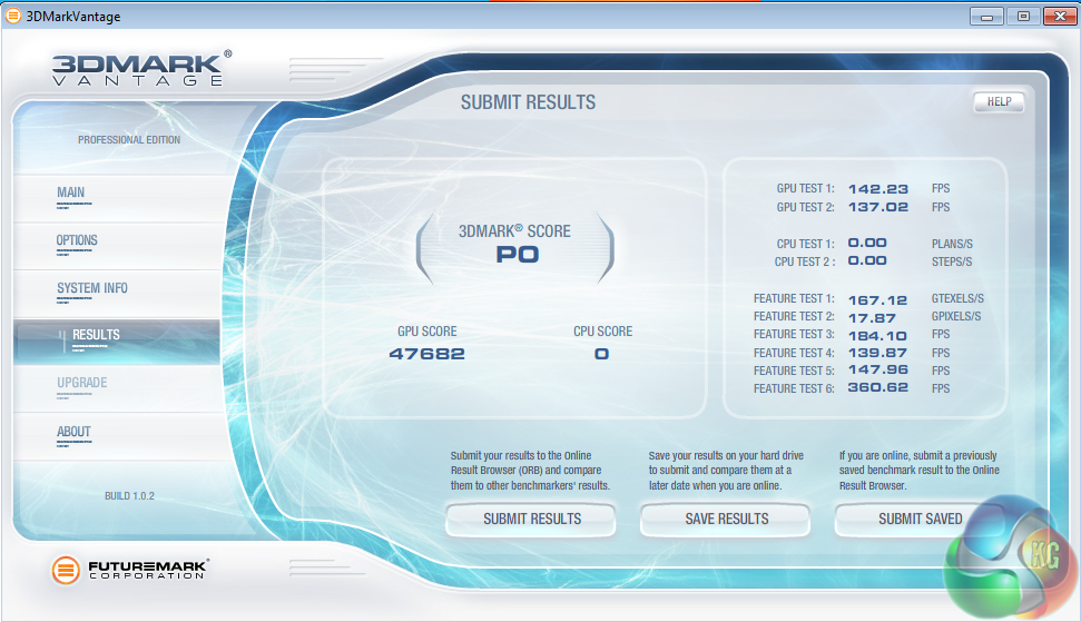 Futuremark released 3DMark Vantage, on April 28, 2008. It is a benchmark based upon DirectX 10, and therefore will only run under Windows Vista (Service Pack 1 is stated as a requirement) and Windows 7. This is the first edition where the feature-restricted, free of charge version could not be used any number of times. 1280×1024 resolution was used with performance settings.