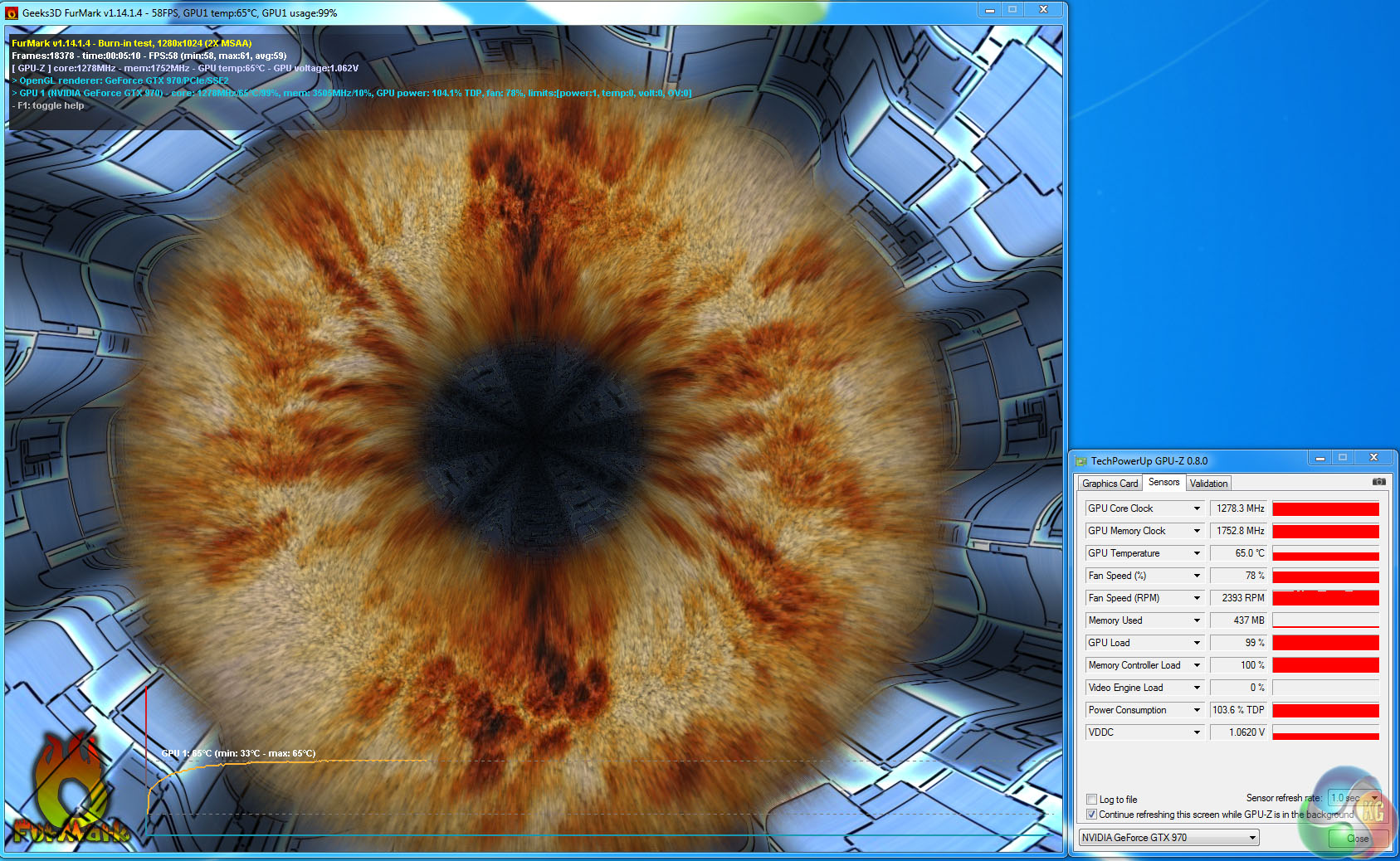 The tests were performed in a controlled air conditioned room with temperatures maintained at a constant 23c – a comfortable environment for the majority of people reading this.Idle temperatures were measured after sitting at the desktop for 30 minutes. Load measurements were acquired by playing Crysis Warhead for 30 minutes and measuring the peak temperature. We also have included Furmark results, recording maximum temperatures throughout a 30 minute stress test. All fan settings were left on automatic.