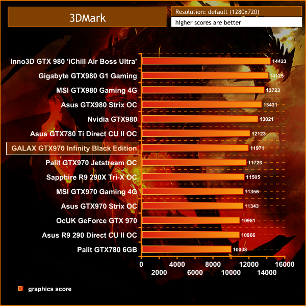 As we would expect, the GALAX GeForce GTX 970 OC Silent ‘Infinity Black Edition' scores just ahead of the slightly lower clocked Palit GTX970 JetStream OC.