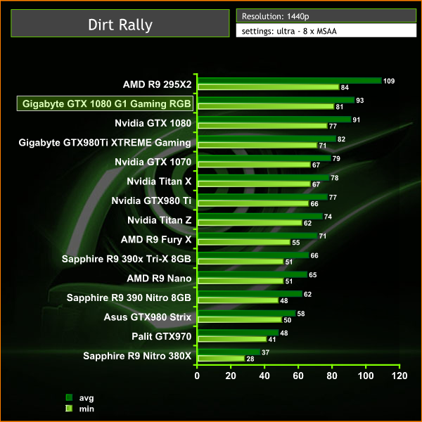 Excellent performance at 1440p averaging 93 frames per second and topping the single GPU chart, behind the dual GPU AMD R9 295X2.