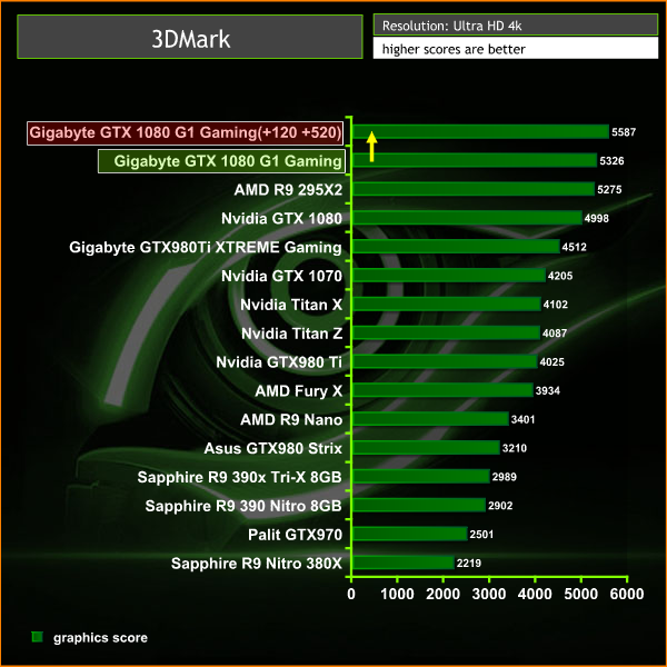 The overclock managed to boost the 3dMark Ultra graphics score from 5326 to 5587.