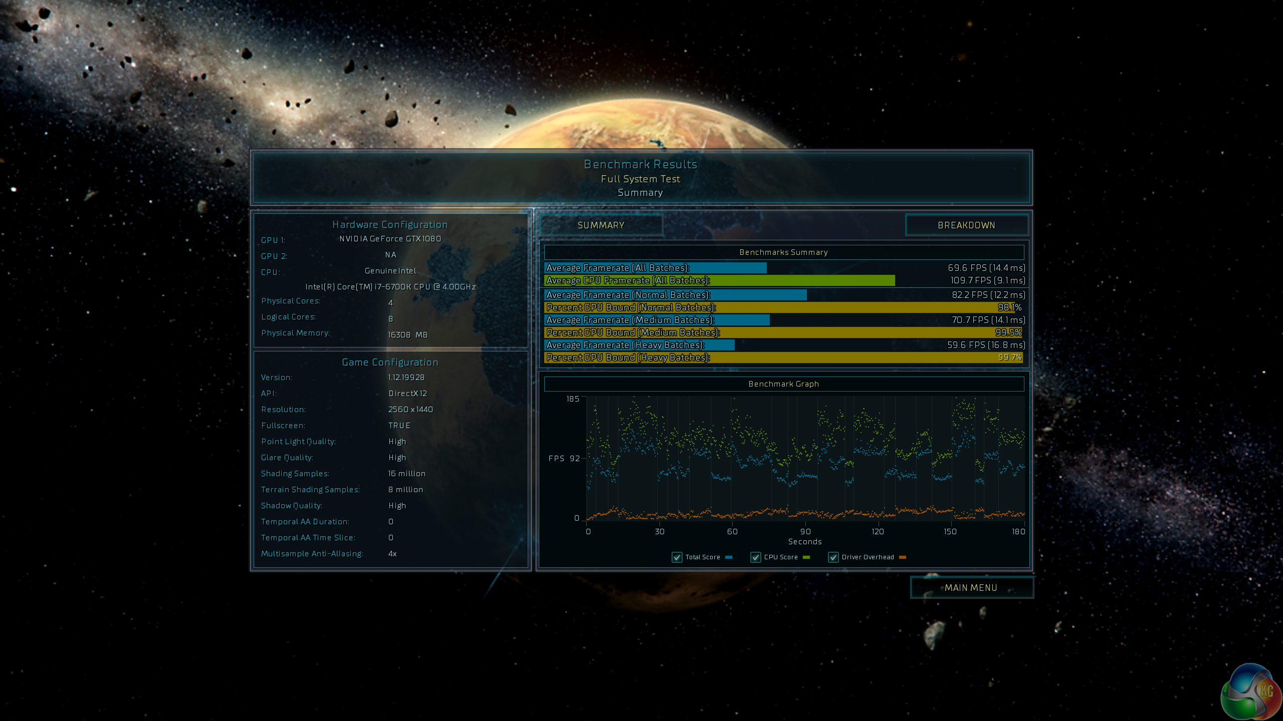 We test the final retail game at 1440p resolution and with EXTREME image quality settings, shown above.
