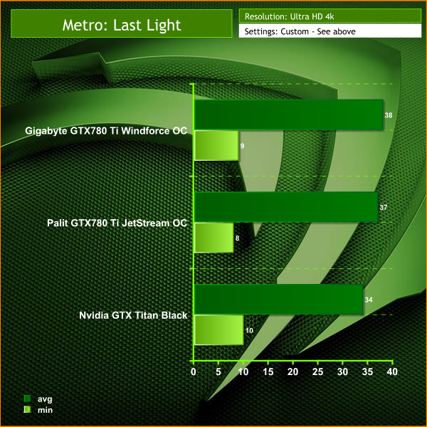 These settings are extremely demanding although we can see a very slight performance edge for the Gigabyte GTX780 Ti Windforce OC.
