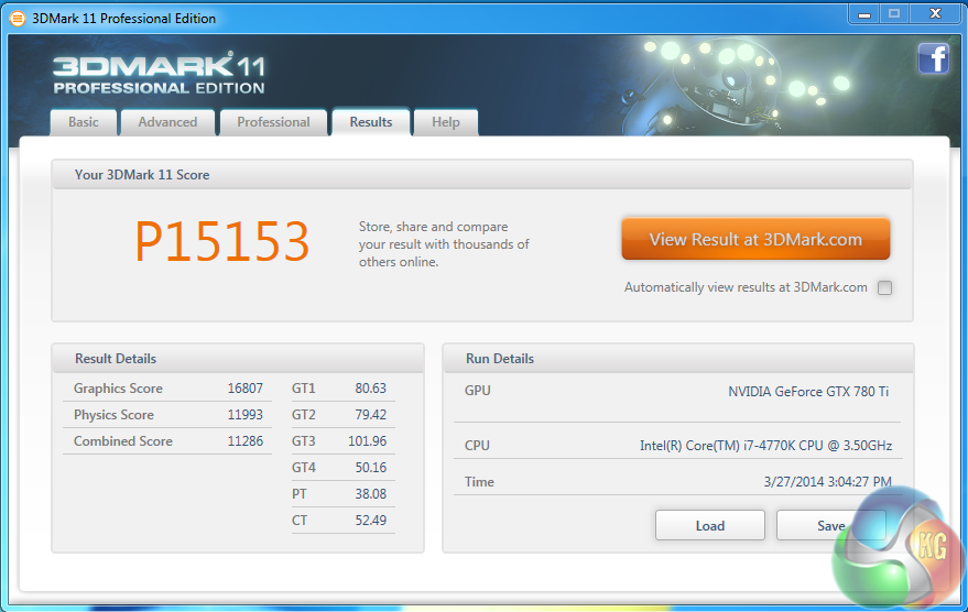 Excellent performance in this Direct X 11 benchmark, scoring 16,807 points in the graphics section of the test.