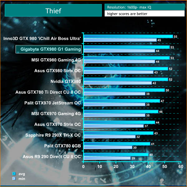 Smooth frame rates from the Gigabyte GTX980 G1 Gaming, even at 1600p.