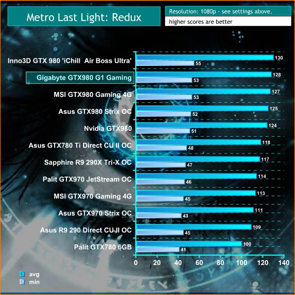 On May 22, 2014, a Redux version of Metro Last Light was announced. It was released on August 26, 2014 in North America and August 29, 2014 in Europe for the PC, PlayStation 4 and Xbox One. Redux adds all the DLC and graphical improvements. A compilation package, titled Metro Redux, was released at the same time which includes Last Light and 2033. (Wikipedia). We test with following settings: Quality-Very High, SSAA-off, Texture Filtering-16x, Motion Blur-Normal, Tessellation-Normal, Advanced Physx-On.