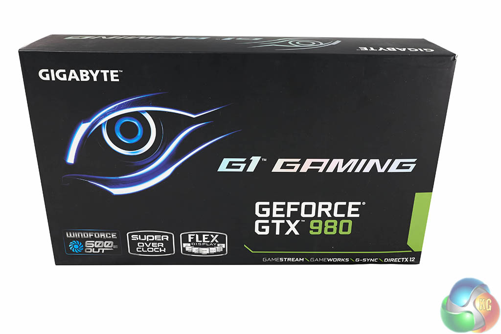The Gigabyte GTX980 G1 Gaming arrives in a dark box with the scary looking eye logo taking centerstage. It is a little disappointing to see such a generic box for this flagship product.