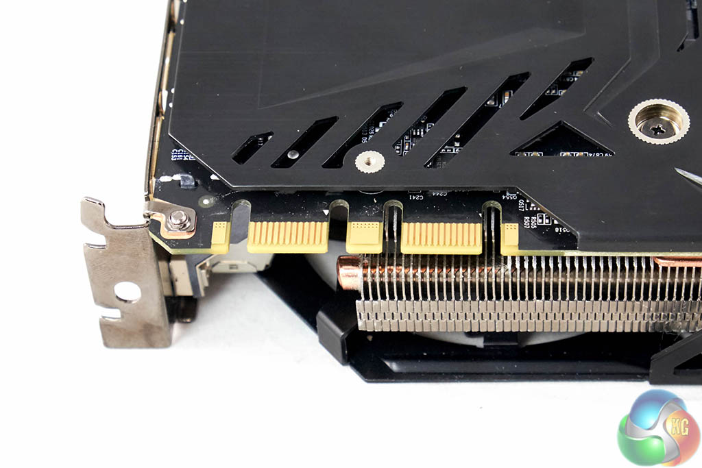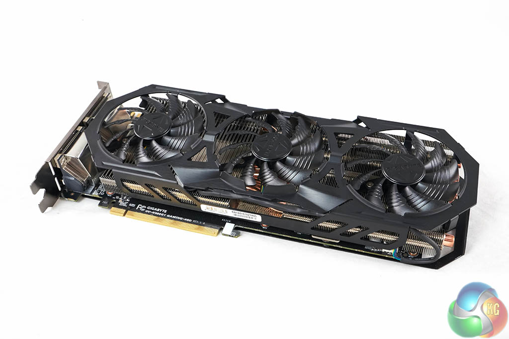The three fans take up the full length of the PCB. The fan blades are curbed with ridges. Gigabyte claim that the design increases air flow by 23% while reducing air turbulence.