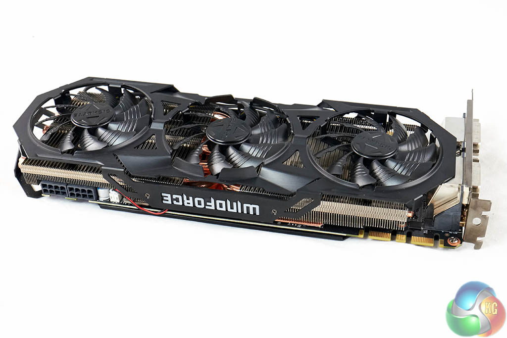 Understated and somewhat elegant – we like it. Visually it couldn't be more of a contrast to the Inno3D GTX980 iChill Herculez X4 Air Boss Ultra'. The simple black design ethic carries over to the back of the card, which features a black backplate. The three large fans are visible within the metal shroud of the cooler.