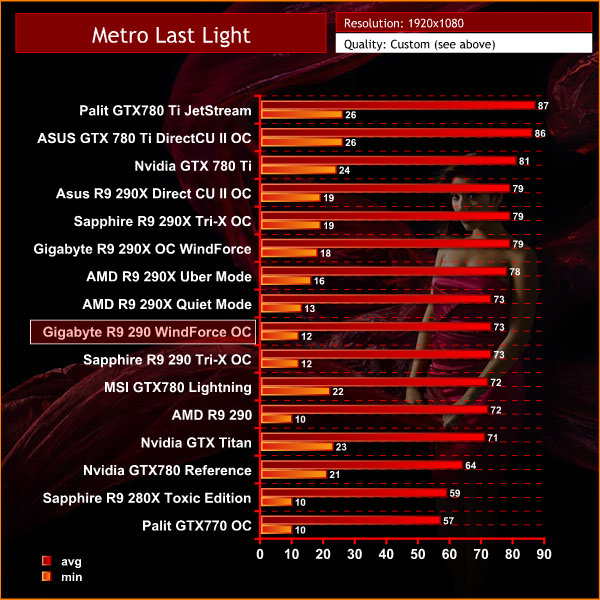A demanding benchmark, however the Gigabyte R9 290 WindForce OC scores well, holding around mid table in our high end shootout.
