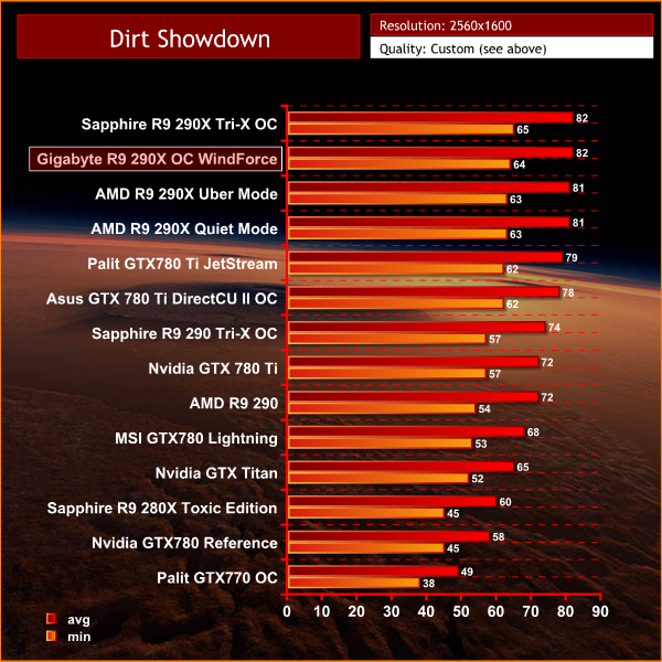 Very closely matched against the Sapphire R9 290X Tri-X OC, averaging 82 frames per second.