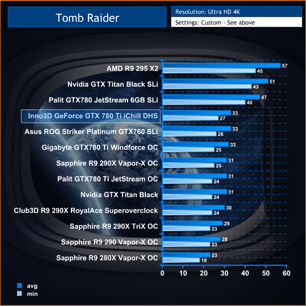 A very tough engine to power at 4k, although the Inno3D GeForce GTX 780 Ti iChill DHS manages to maintain frame rates close to 30 at all times (and never below the borderline smooth frame rate limit of 25).