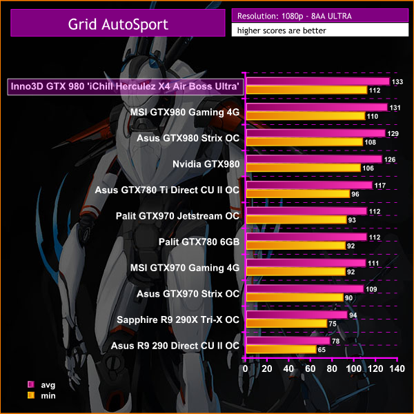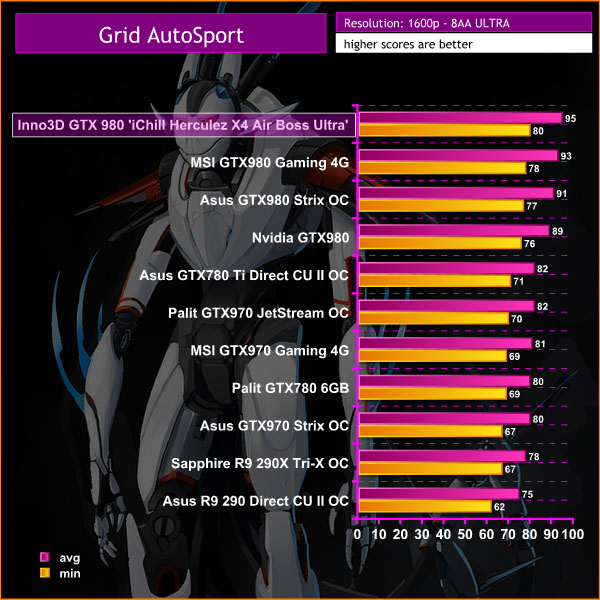 As we would expect, the Inno3D GTX 980 ‘iChill Herculez X4 Air Boss Ultra' takes top position at both resolutions.