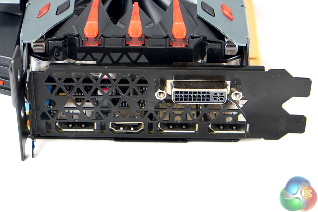 The Inno3D GTX 980 ‘iChill Herculez X4 Air Boss Ultra' has a single DVI connector on the back (DVI-D), alongside three full sized DisplayPort connectors and a single HDMI connector. This HDMI port will handle 4K resolutions at up to 60hz. INNO3D earn bonus points for using full sized connectors – no silly adapters needed.